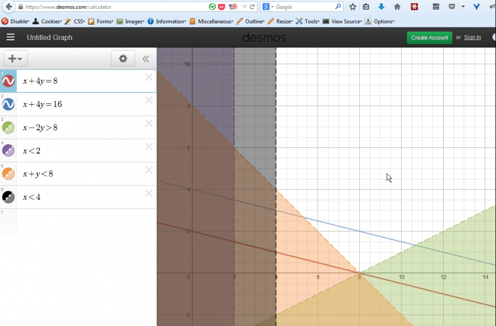 O ponto onde o Z tem o valor mínimo é o ponto 8,0 com um Z de 8.A região admissível é a região a branco.